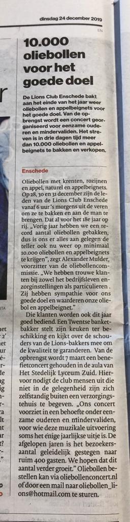 De afgelopen jaren viel de oliebollenactie ook op in de media. Zowel in de krant als op de radio kregen we positieve publiciteit.